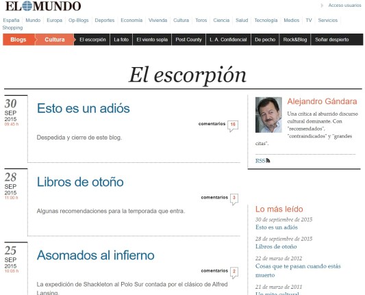 Aprovecho un momento para hacerme eco de las advertencias que Alejandro Gándara vierte en su blog Escorpión en el periódico El Mundo acerca de la última novela de Auster y de la obra literaria de Murakami. Tanto los Viajes por el Scriptorium de Auster como Tokio Blues de Murakami dominan la sección de novedades de las librerías. Gándara advierte que semejante operación de marketing literario no se corresponde con la calidad intrínseca de las obras.