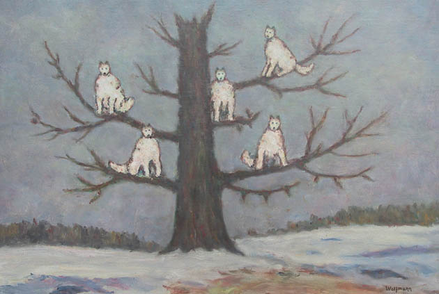 «Soñé que era de noche y estaba acostado en mi cama (mi cama tenía los pies hacia la ventana, a través de la cual se veía una hilera de viejos nogales. Sé que cuando tuve este sueño era una noche de invierno). De pronto, se abre sola la ventana, y veo, con gran sobresalto, que en las ramas del grueso nogal que se alza ante la ventana hay encaramados unos cuantos lobos blancos. Eran seis o siete, totalmente blancos, y parecían más bien zorros o perros de ganado, pues tenían grandes colas como los zorros y enderezaban las orejas como los perros cuando ventean algo. Presa de horrible miedo, sin duda de ser comido por los lobos, empecé a gritar…. y desperté. Mi niñera acudió para ver lo que me pasaba, y tardé largo rato en convencerme de que sólo había sido un sueño: tan clara y precisamente había visto abrirse la ventana y a los lobos posados en el árbol. Por fin me tranquilicé sintiéndome como salvado de un peligro, y volví a dormirme.