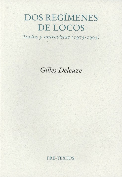 Gilles Deleuze: Dos regímenes de locos. Textos y entrevistas (1975-1995). José Luis Pardo (tr.) Valencia: Pre-textos, 2007.
