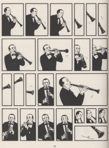 Así dibuja Lutes la música en un ejercicio sorprendente de sinestesia. Casi puede decirse que se puede seguir el ritmo mirando las viñetas.