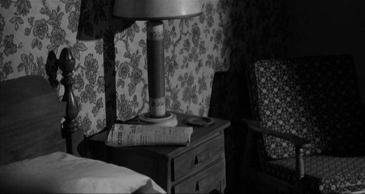 – Madre de Norman. Voz en off. Es muy triste que una madre tenga que declarar contra su propio hijo. No podía permitir que creyeran que el crimen lo cometí yo. Ahora lo encerrarán. Debí hacerlo yo misma hace años. Siempre fue un malvado. Intentar hacerles creer que yo misma había asesinado a aquellas muchachas y aquel hombre. Como si pudiera hacer algo excepto estar sentada y observar igual que sus pájaros disecados. Ellos saben que no puedo ni mover un dedo. Ni quiero. Me quedaré aquí sentada. No haré un solo movimiento. Sospecharían de mí. Probablemente me vigilan. Que vigilen. Así se darán cuenta de la clase de persona que soy. No voy a matarte (mirando a una mosca posada en su mano). Tranquilízate. Seguro que me están vigilando. Mejor. Así dirán, «pero si no fue capaz ni de matar una mosca…»