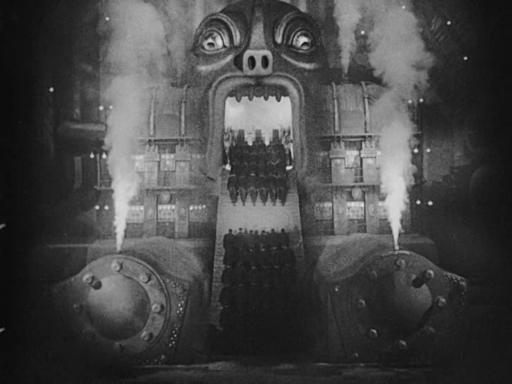 8. No cabe pasar por alto el antisemitismo y el racismo presentes en la cinta de Lang. El antisemitismo está claro en la figura del malvado Rotwang, creador del robot que conduce a las masas a su perdición. El personaje es sistemáticamente asociado al judaísmo: la estrella de cinco puntas en la puerta de su casa recuerda a la estrella de David, es el causante de la revolución obrera como el judío Marx, crea y cree en un falso Mesías. En el lado opuesto está la figura cristiana de María. Esta predica en las catacumbas rodeada de cruces. Anuncia la llegada del verdadero Mesías y la reconciliación de la humanidad a través del Amor. Para colmo, el pacto final se realiza a las puertas de una catedral. En cuanto al racismo, recuerda que la falsa María, la madre Babilonia, surge en el cabaret Yoshiwara sobre un pedestal sostenido por bestias infernales, que en la película son esclavos negros que terminan convirtiéndose en los siete pecados capitales.