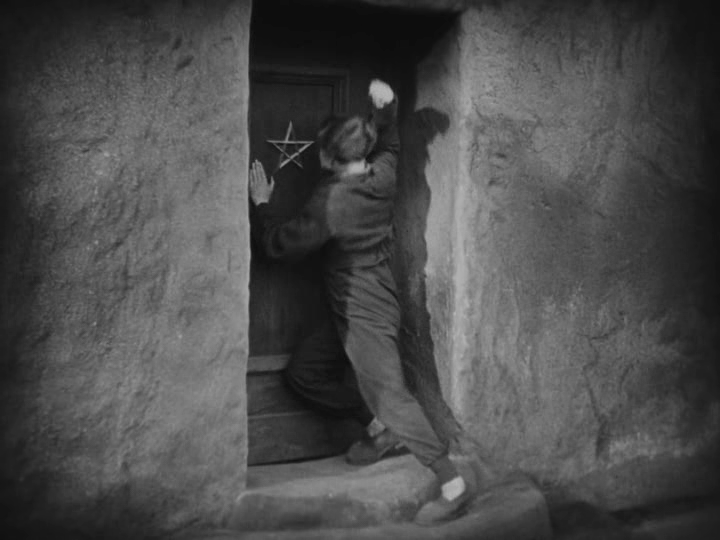 El director-amo Fredersen, temiendo una revuelta de los obreros, contacta con el científico Rotwang. Este vive en una casa en cuya puerta hay una estrella de cinco puntas. Habitualmente la estrella de cinco puntas está asociada a la magia y la alquimia. Por desgracia, es inevitable ver cierto tono profético en estas imágenes: pocos años después los nazis marcarán las casas de los judíos con la estrella de David, una estrella de seis puntas.