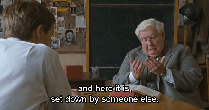 Adaptación de la exitosa obra de teatro de Alan Bennet, estrenada en 2004 en el Lyttelton Theatre de Londres. Cuenta cómo un grupo de estudiantes aventajados prepara sus exámenes de ingreso en las Universidades más prestigiosas del Reino Unido. El argumento gira en torno al profesor Héctor, una actualización muy lograda del maestro Sócrates, y otros temas habituales en los diálogos Platón. Recuerdo, por ejemplo, la oposición entre el conocimiento verdadero y el que es sólo aparente, o «útil para los exámenes», o el modo en que Héctor explica la reminiscencia o anámnesis platónica, el secreto del verdadero aprendizaje.