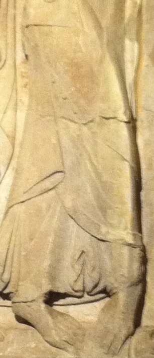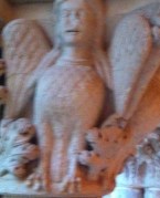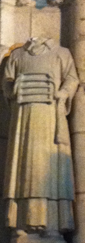 En el pórtico de la Iglesia de San Esteban está San Lorenzo; además de hacerlo a la parrilla, lo han decapitado unos vándalos modernos.