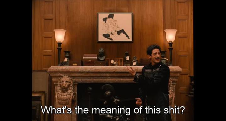 La trama gira en torno a una pintura sin valor artístico pero codiciada por todos, Boy with Apple del fiticio Johannes Van Hoytl the Younger. Cuando M. Gustave la sustrae honorablemente, su ayudante Zero la reemplaza por un Schiele algo obsceno, lo que despierta la ira irrefrenable de la víctima del robo. En mi opinión, el momento más cómico de esta divertida película.
