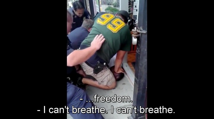 En la lucha por la igualdad de derechos de los afroamericanos en Estados Unidos surgieron las figuras opuestas del pacifista Martin Luther King y del líder de los panteras negras Malcolm X. Es esta una lucha que, como puede verse en el fotograma final («I can’t breathe«), está lejos de haber terminado.