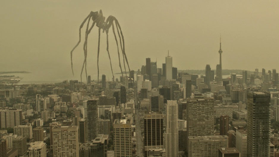 Basada en El hombre duplicado de José Saramago, los dos fotogramas finales de Enemy sorprenden por la variedad de interpretaciones que admiten. Quizás en la novela de Saramago (que no he leído todavía) la araña simbolice la red política que inconscientemente tejemos para que nos mantenga bajo control. La política es la forma en que los individuos sustituyen la incertidumbre de la libertad por la comodidad del orden, la rutina y la repetición. El doble es el extraño que pugna por salir a la luz.