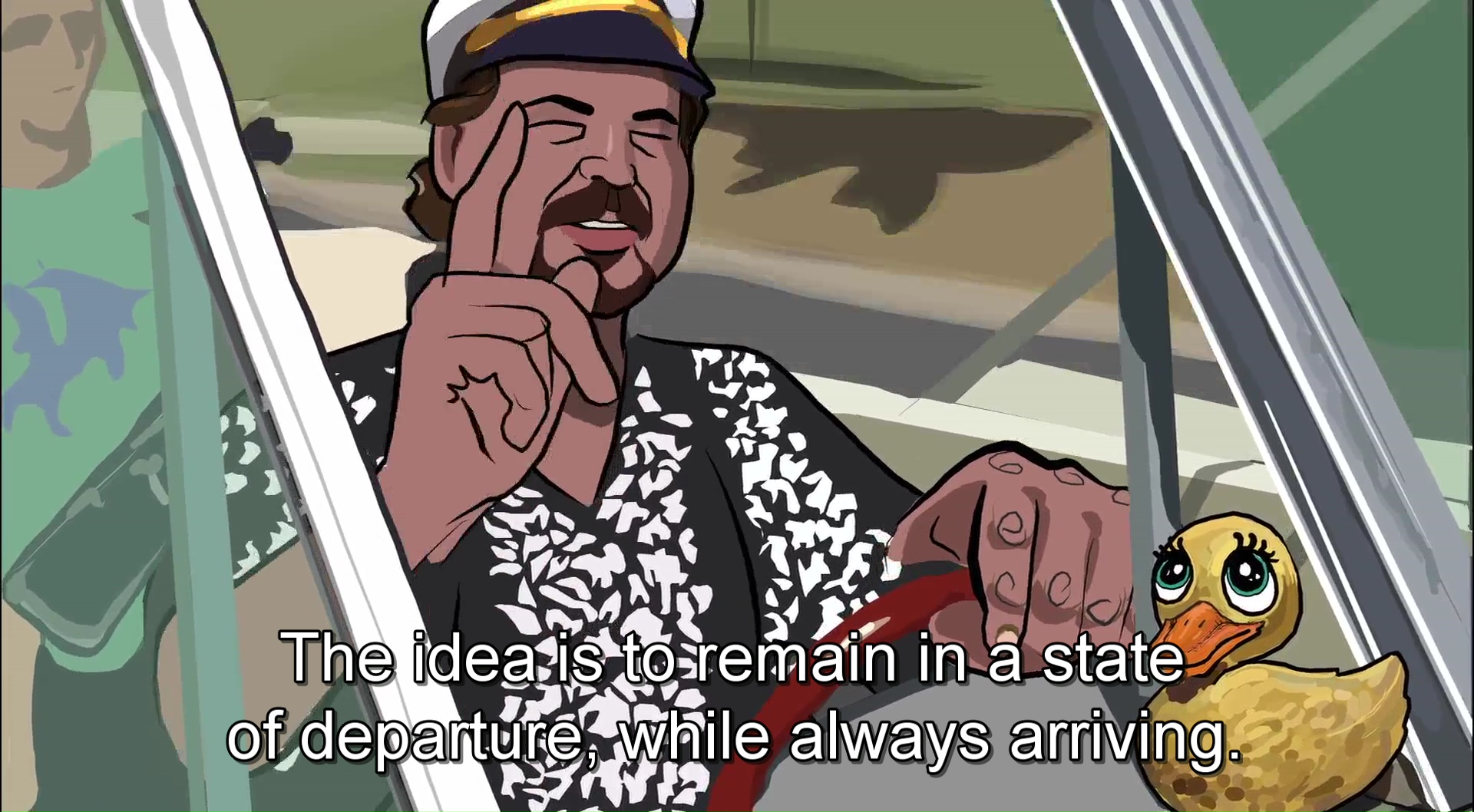 El conductor del coche pirata (Bill Wise) que da comienzo al viaje de Willy lo hace con una afirmación de corte budista: «The idea is to remain in a state of constant departure while always arriving».