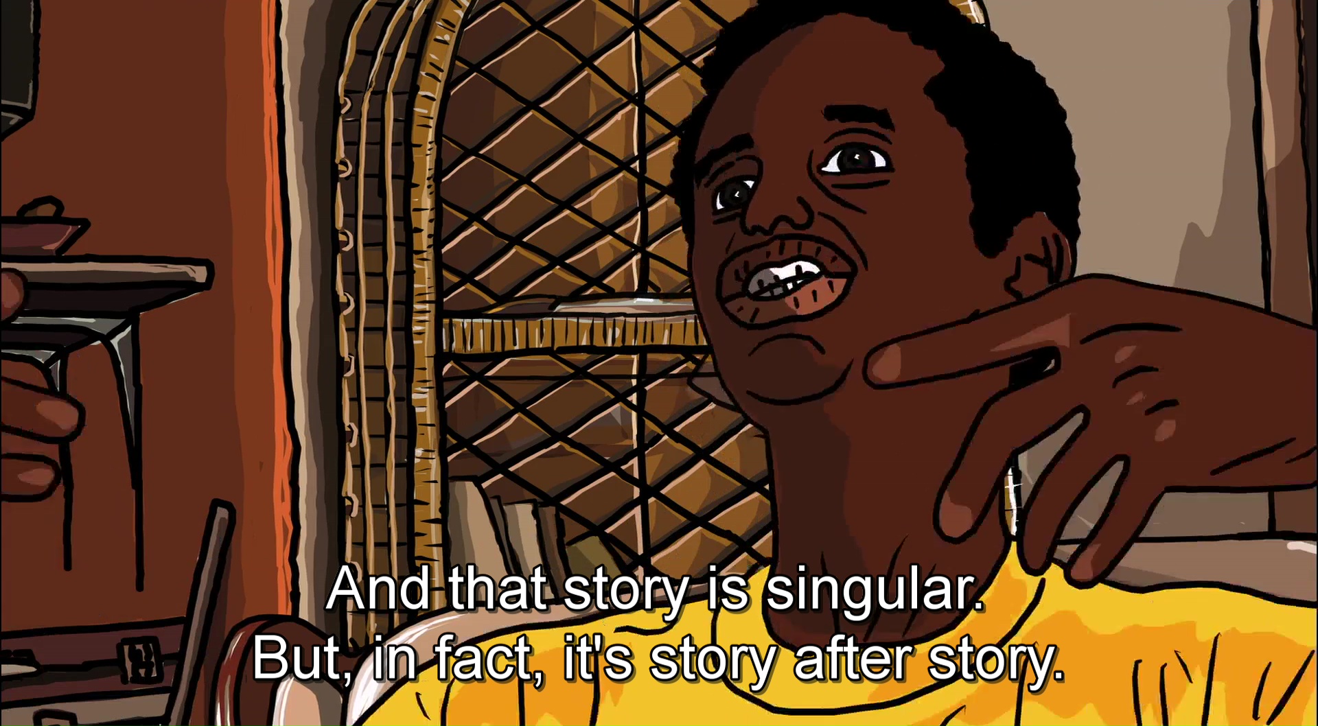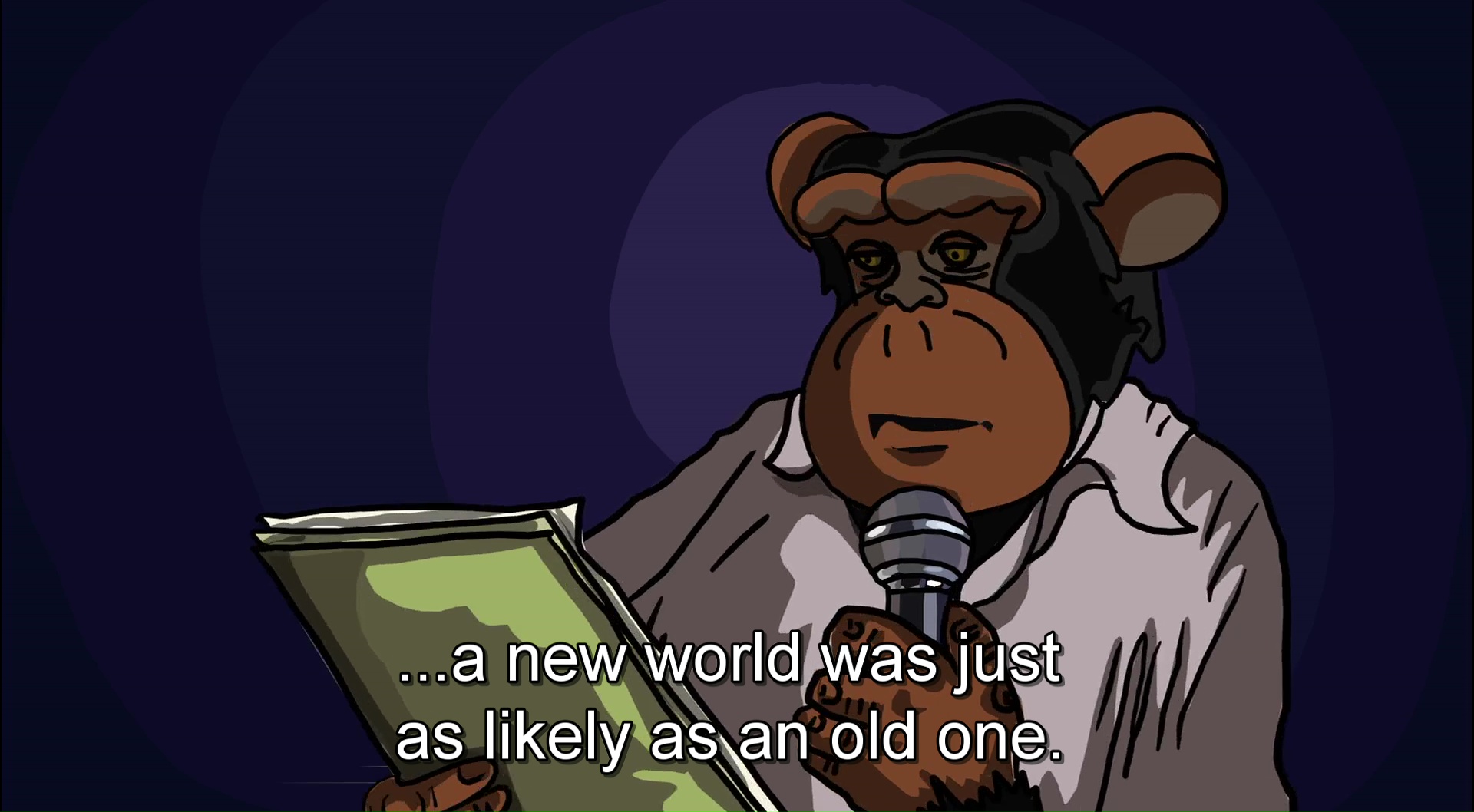 La situación se vuelve kafkiana cuando un chimpancé (el músico Steve Fitch) aporta la voz en off a un documental sobre la posibilidad de crear un nuevo mundo.