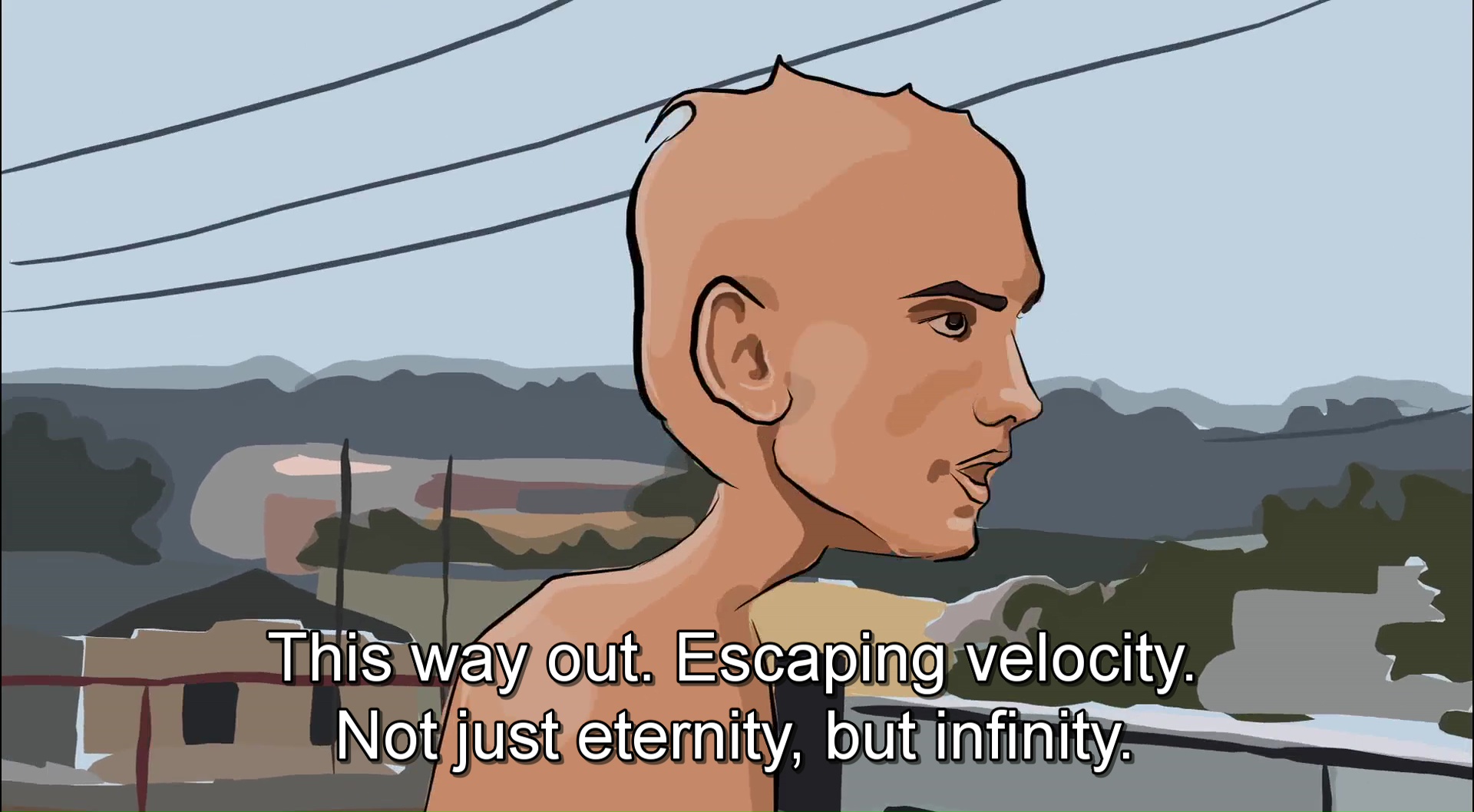 Ryan Power, cineasta, da vida al único personaje que tiene éxito en escapar del mundo de los sueños. Es un viaje al infinito. Una idea de corte budista que enlaza muy bien con el inicio de la película.