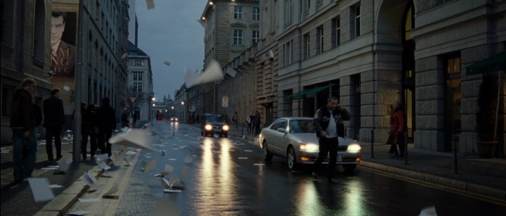 Este segundo modo de entender la verdad es la respuesta a una escena cómica y enigmática que imita en cierto modo al cine mudo. Me refiero al momento en que, en medio de un vendaval, el jardinero barre las hojas, las coloca en la carretilla, salen volando y vuelta a empezar. Esta coreografía absurda es la imagen que ve el escritor desde su ventana mientras lee la tediosa autobiografía del político. El significado de la escena es claro y adelanta el final de la película: es imposible poner orden a las páginas del relato, al revuelo de hojas que levanta el viento. No hay jardinero, ni escritor fantasma ni servicio de inteligencia que puedan detener el progresivo desorden y deterioro asociados a cualquier relato.