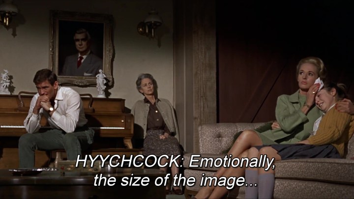 Hitchcock se formó en el cine mudo: su concepción del séptimo arte es puramente visual. Casi podría prescindirse de los diálogos. En su obra el lenguaje de las imágenes posee una sintaxis propia, casi musical. 🙂